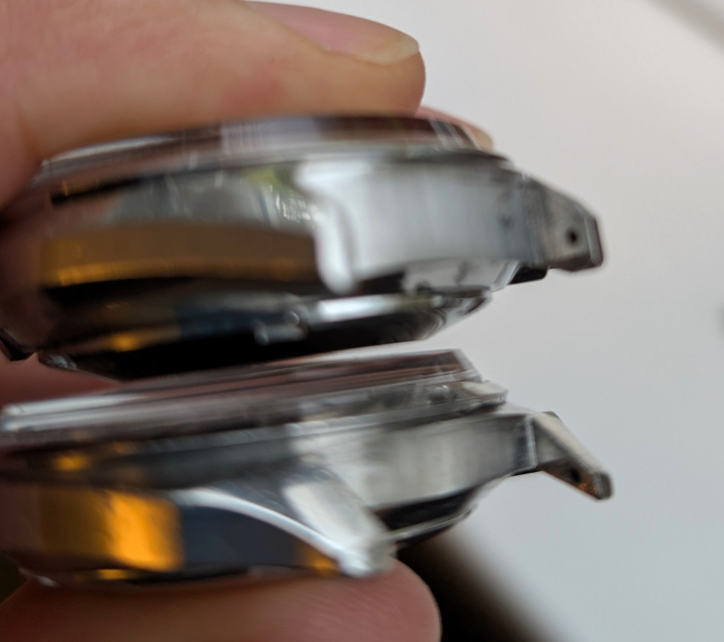 The problem lies in the shape of the lugs… [forgive the blurriness but you’ll get the idea – Panda on top, with much thicker lugs]