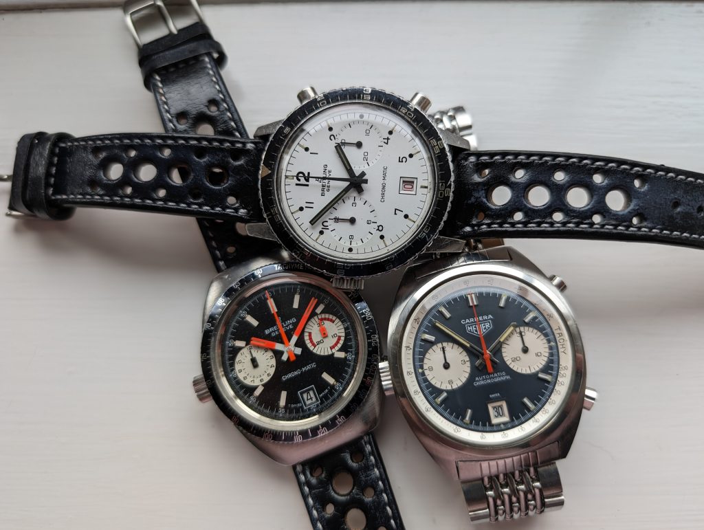 3 left-hookers together … the 2110, 2114 and Heuer Carrera 1153N. I moved the 2110 on even though I really liked it. I have too many watches…